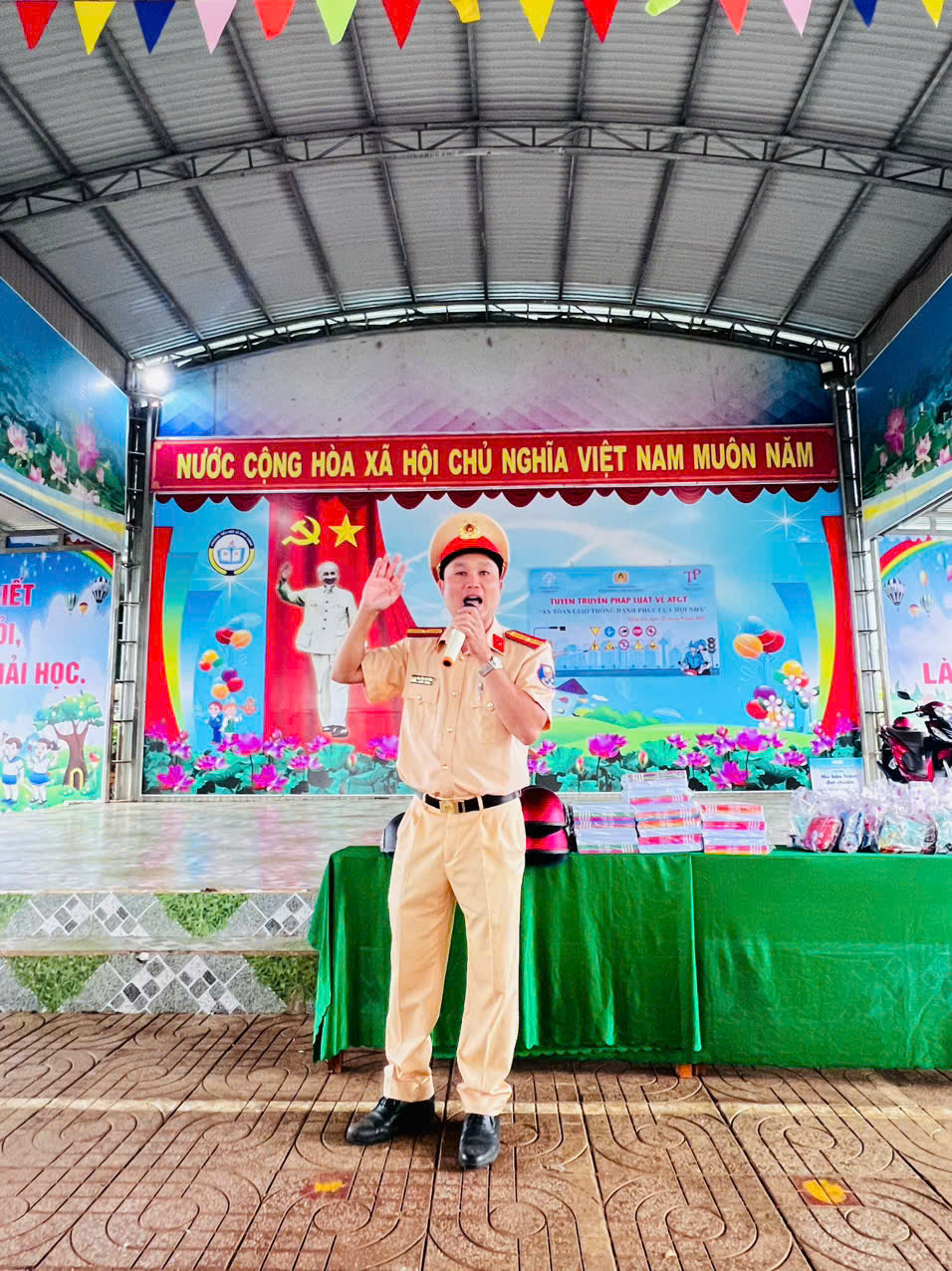 Tiết mục văn nghệ mở đầu Thượng úy Trần Văn Tiến tuyên truyền về Luật trật tự ATGT